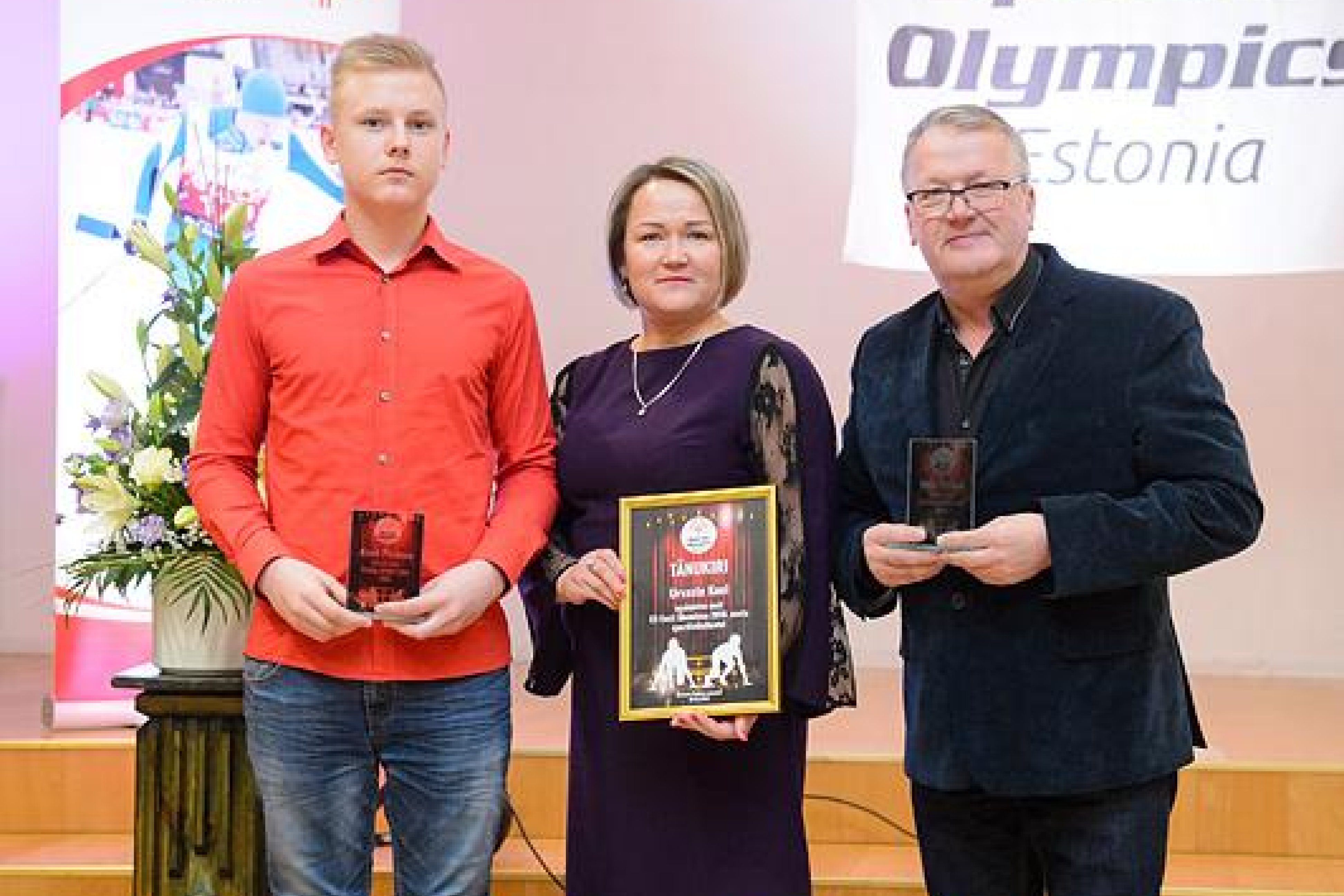 Fotol (fotograaf Margus Muts): Parim sportlane Karel Piirimaa, direktor Jaanika Käst, treener/õpetaja Vladimir Golubev