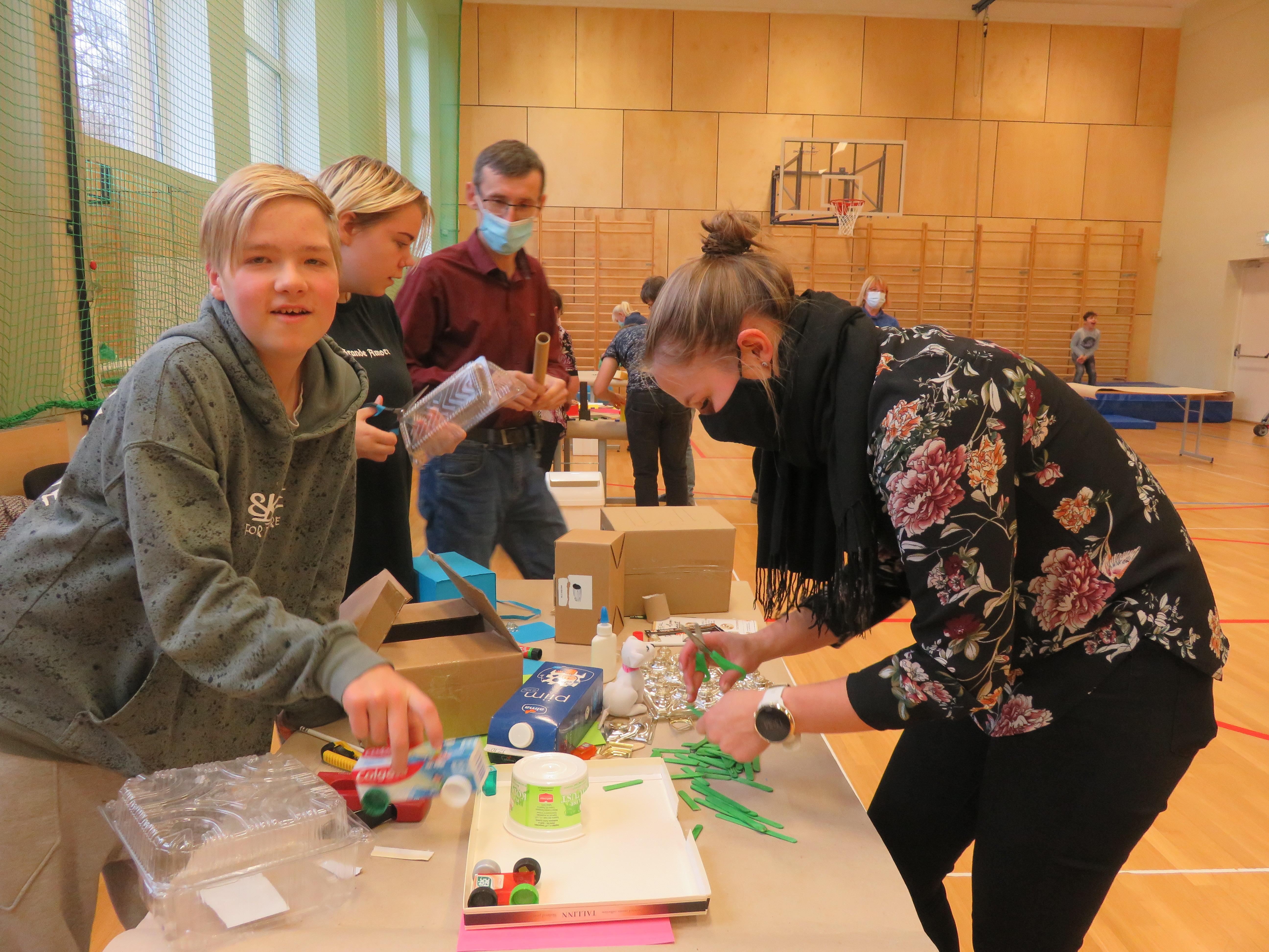 Neljapäeval kogunesid kõik õpilased võimlasse ja üheskoos meisterdati erinevatest jäätmetes linna makett. Vineerist alusele tekkisid vanast kangast tänavad koos valgusfooridega ja mererand, mis kaetud kivikestega, promenaad koos mänguväljakuga, haigla, tankla, jäätisepulkadest meisterdatud aiaga uhked majad, kus auto ja garaaž hoovi peal, päikesepaneeliga elamu, koerakuut koos koeraga, puud haljasaladele jne. Jäätmetest meisterdatud makett jääb eksponaadina fuajeed kaunistama.