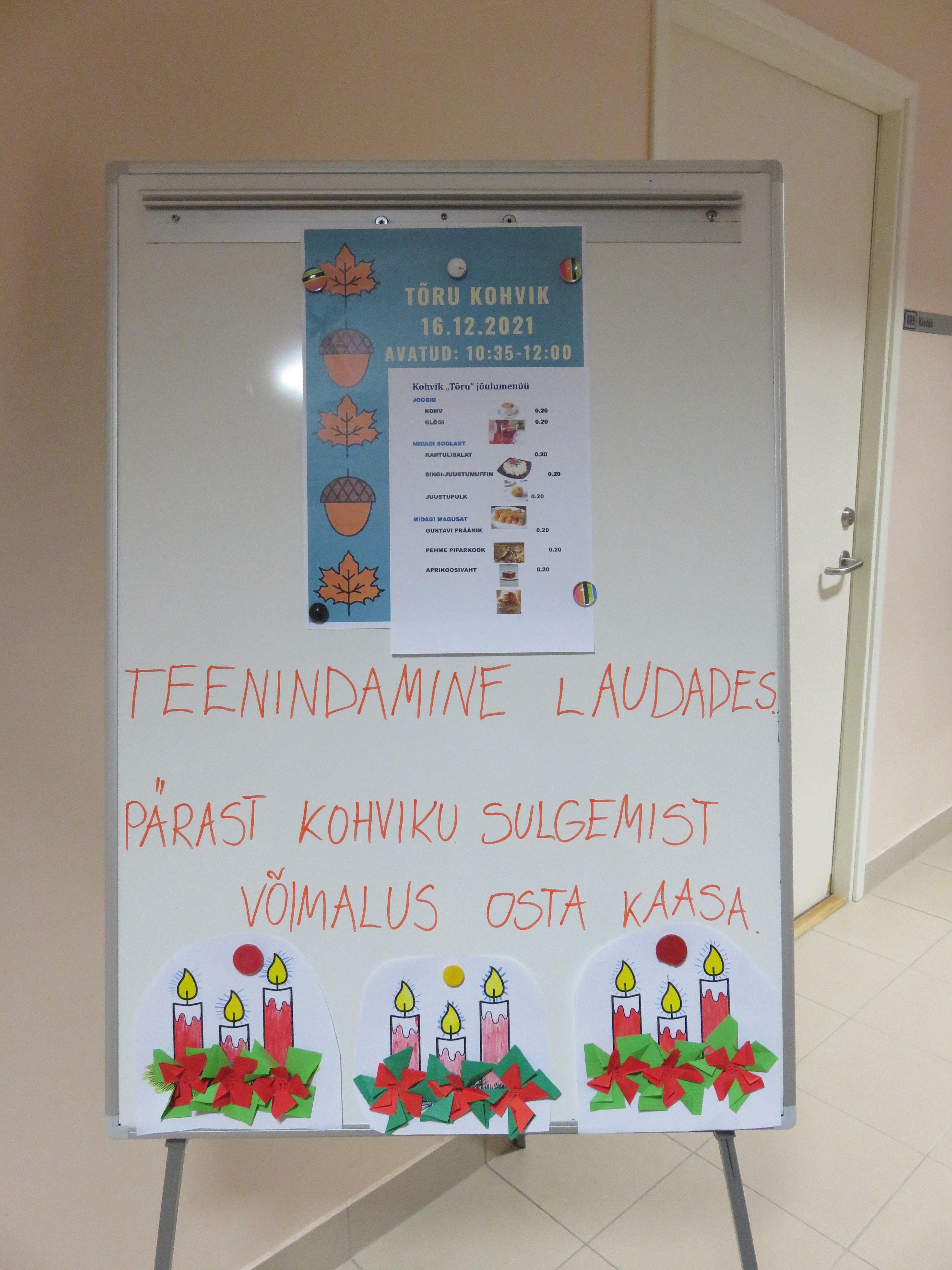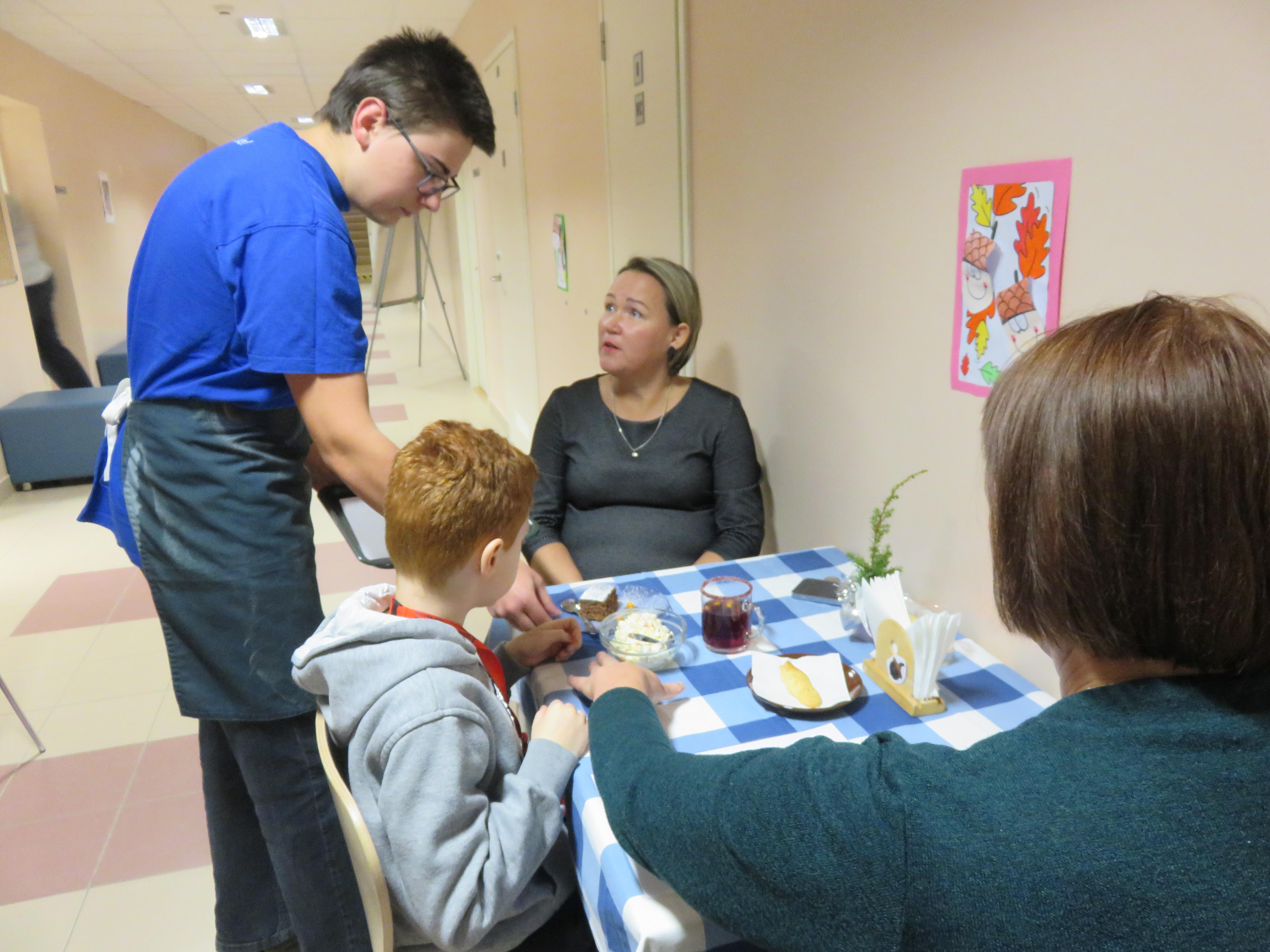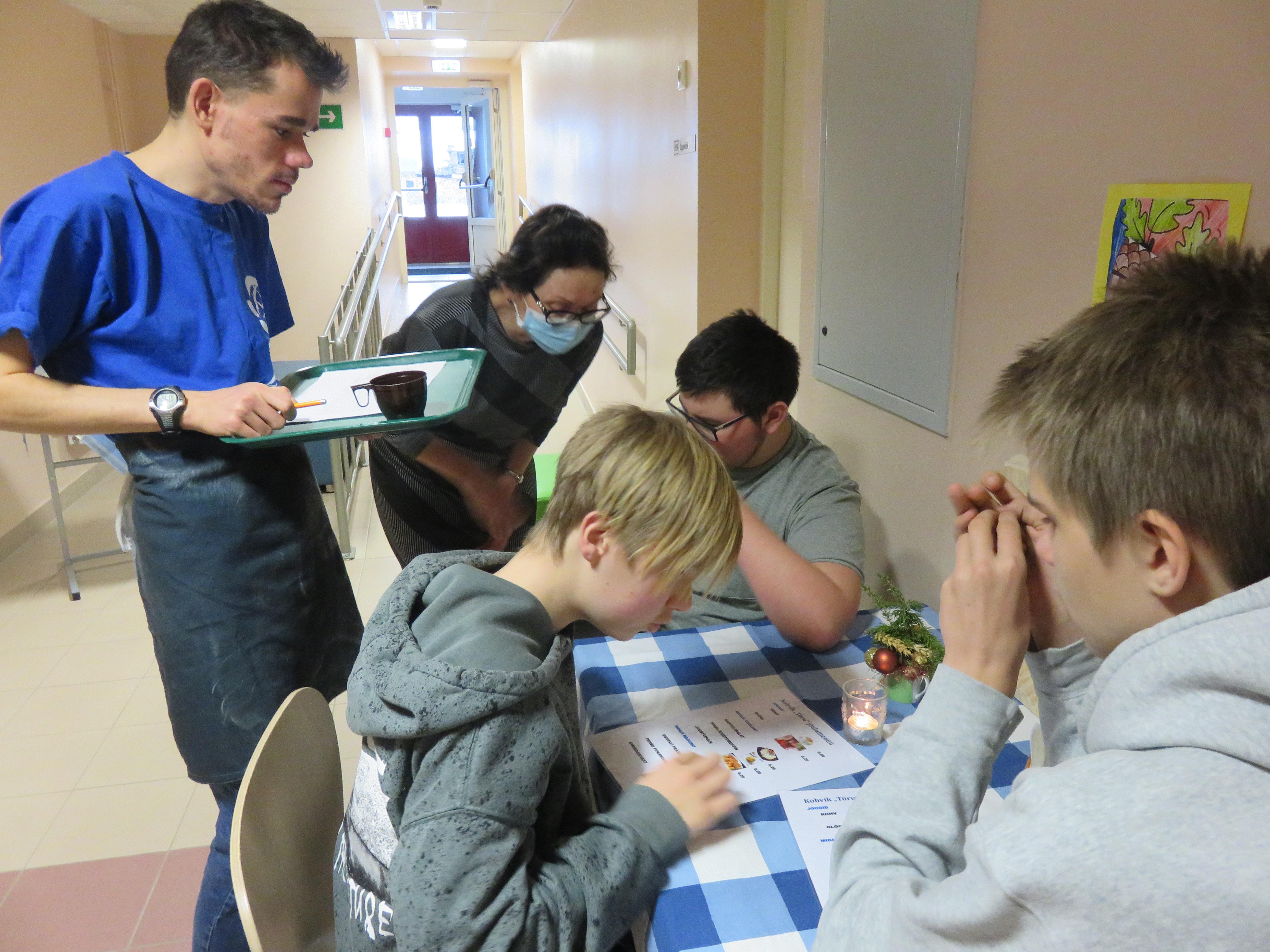 Juba nädal varem võis kuulutuselt lugeda, mida kohvikus pakutakse. Noored kokad toimetulekuõppest ja kutseõppest toimetasid mitu päeva õppeköögis, et külastajatele maitsvaid suupisteid valmistada. Kohviku külastajaid teenindasid kutseõppe õppurid- võtsid vastu tellimusi, arveldasid rahaga, tõid toidu lauale ja viisid kasutatud nõud ära. Külastajad tundsid end nagu päris kohvikus: lahked teenindajad, maitsvad toidud, kaunilt kujundatud lauad ja mõnus jõulumuusika.