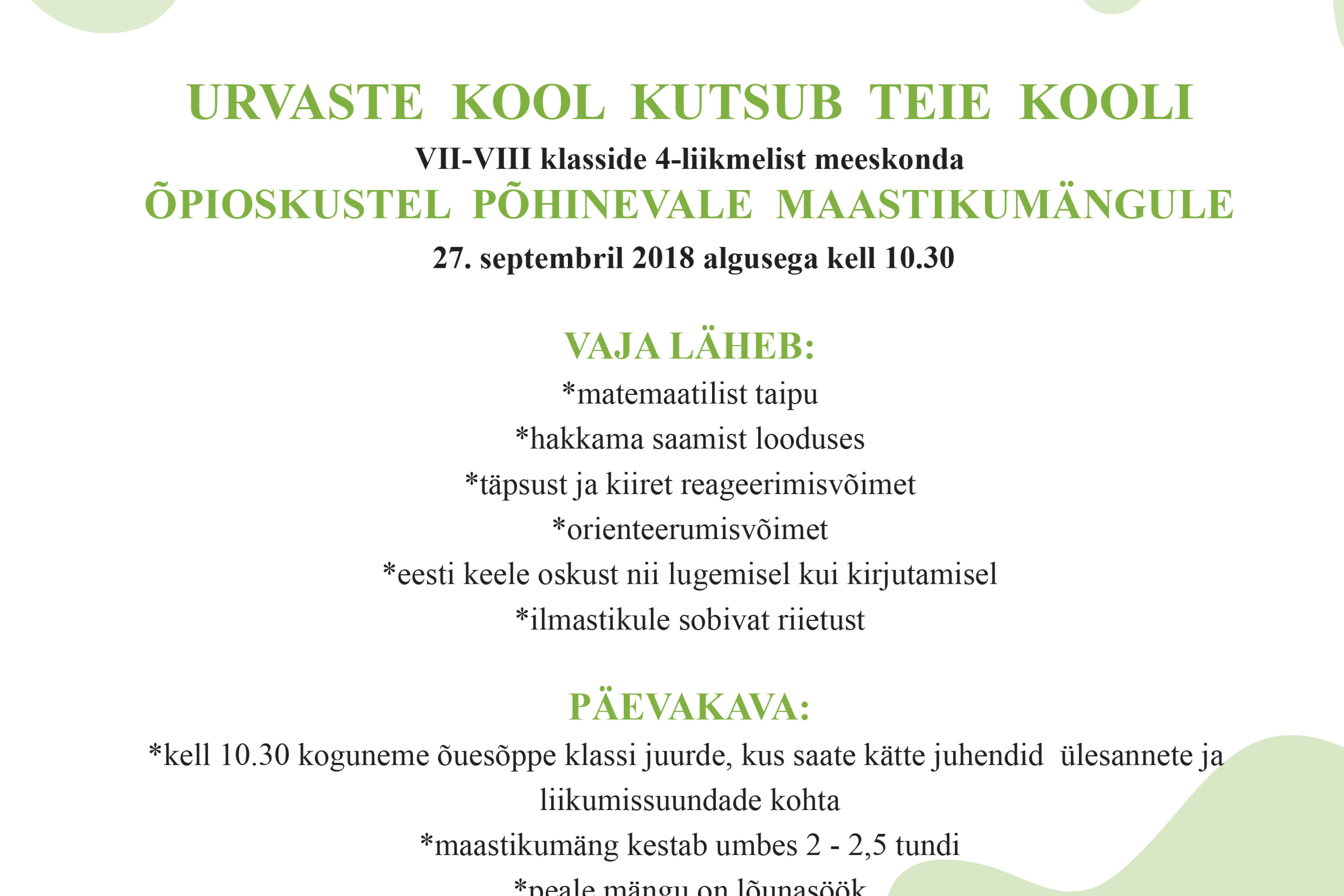 Osalema kutsume Kiigemetsa Kooli, Lahmuse Kooli, Valga Jaanikese Kooli, Kammeri Kooli ja Ämmuste Kooli.