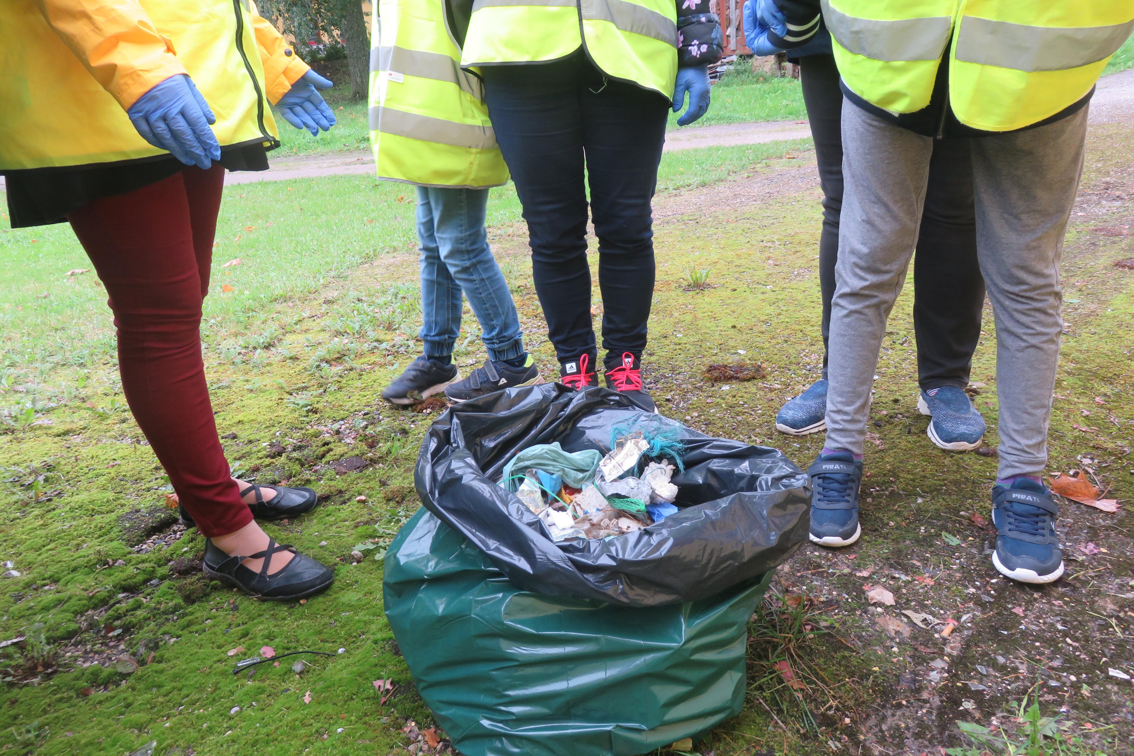Õpetaja Lea klass: Kuigi jäime pisut vihma kätte, käisime endale valitud teekonna vapralt läbi. Kooli lähiümbruses oli “saak” üpris kesine. Siirdusime maanteekraavi ja metsaalust koristama. Sealt leidsime üht-teist põnevat – supikulbi, auto ilukilbi, purke, topse, pudeleid, klaasikilde.