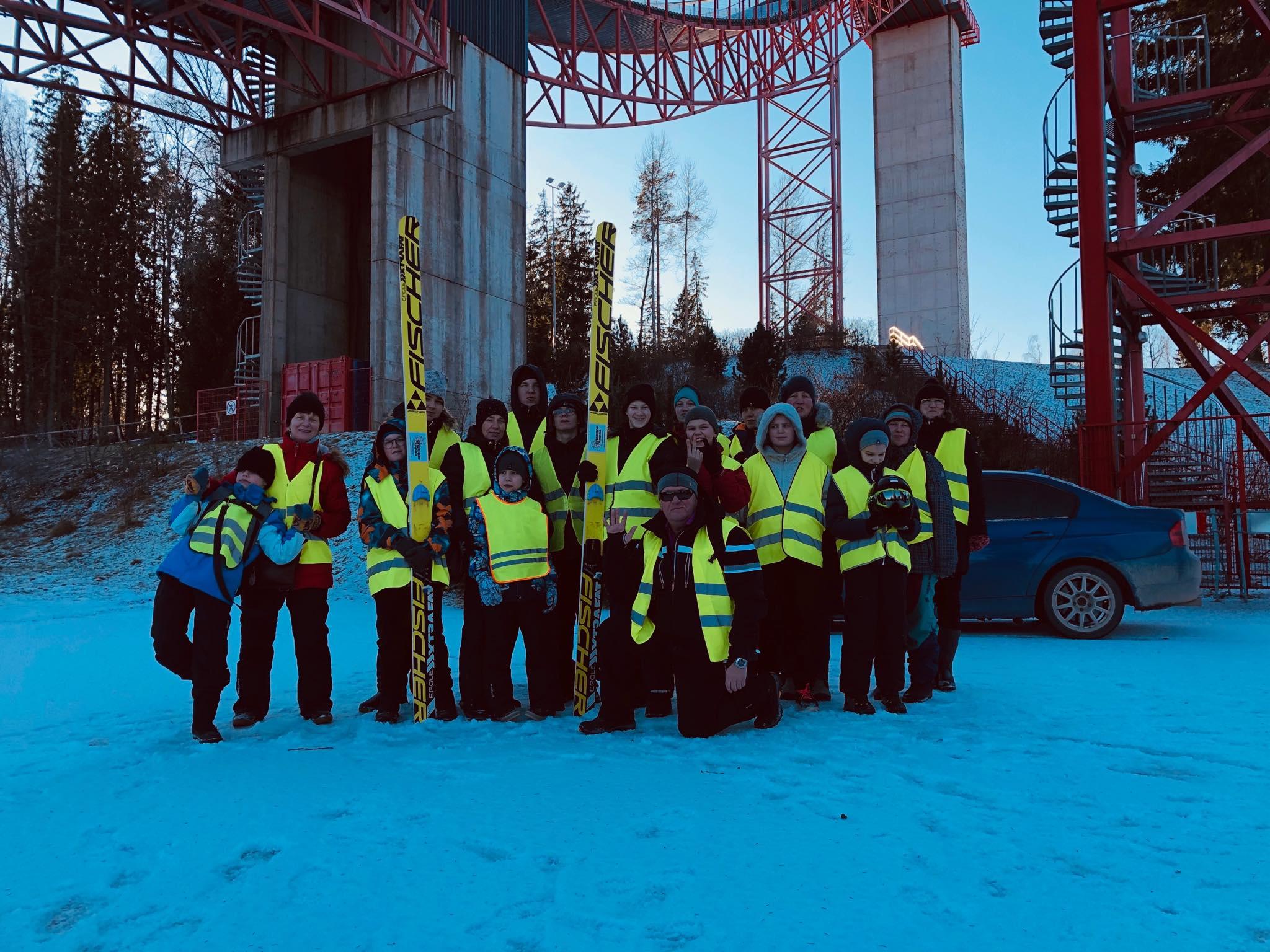 Maandumisnõlvalt üles hüppemäejalamile lasime end vedada lindil, selleks oli tarvis ka pisut julgust. Üleval ootas meid tuntud kahevõistleja Karl August Tiirmaa (osalenud kahel olümpial), kes viis meid kohtuniketorni ja tutvustas suusahüppevarustust ning vastas meie paljudele küsimustele.