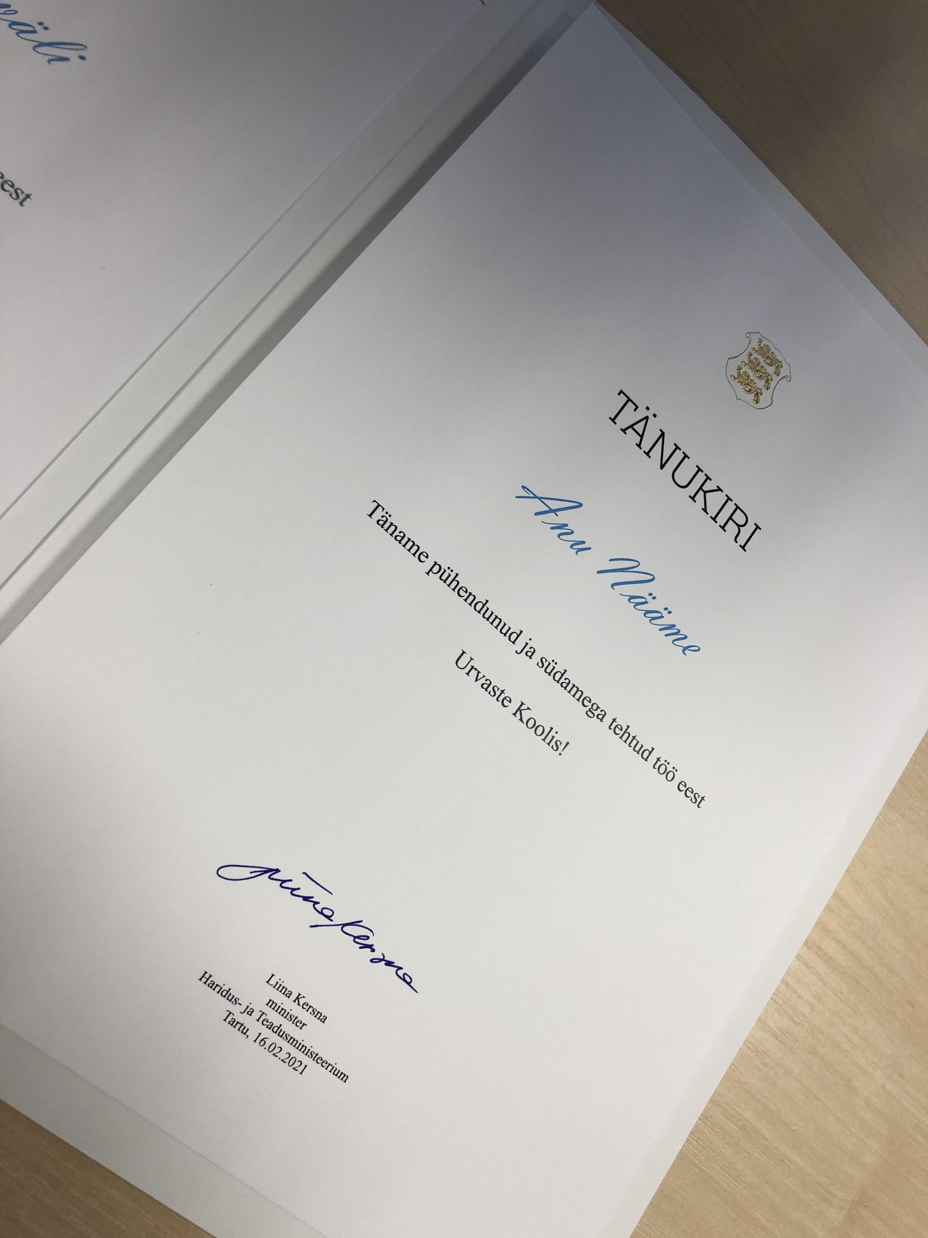 Eesti Vabariigi 103. aastapäevale pühendatud kontsertaktus toimus Urvaste koolis traditsiooniliselt õpilaste esinemise ja töötajate tunnustamisega. Meeleolukad muusikalised tantsu- ja laulunumbrid vaheldusid isamaa-teemaliste luuletustega. Pidulikkust lisas direktori kõne. Kaunid lillekimbud ning tänukirjad ulatati tööjuubelite puhul neljale inimesele, kelle hulgast väärikaima tunnustuse pälvis koolis 35 aastat õpilastele toitu valmistanud kokk Anu Nääme. Hinge jäi soojus ja tunne, et oleme üks suur pere.