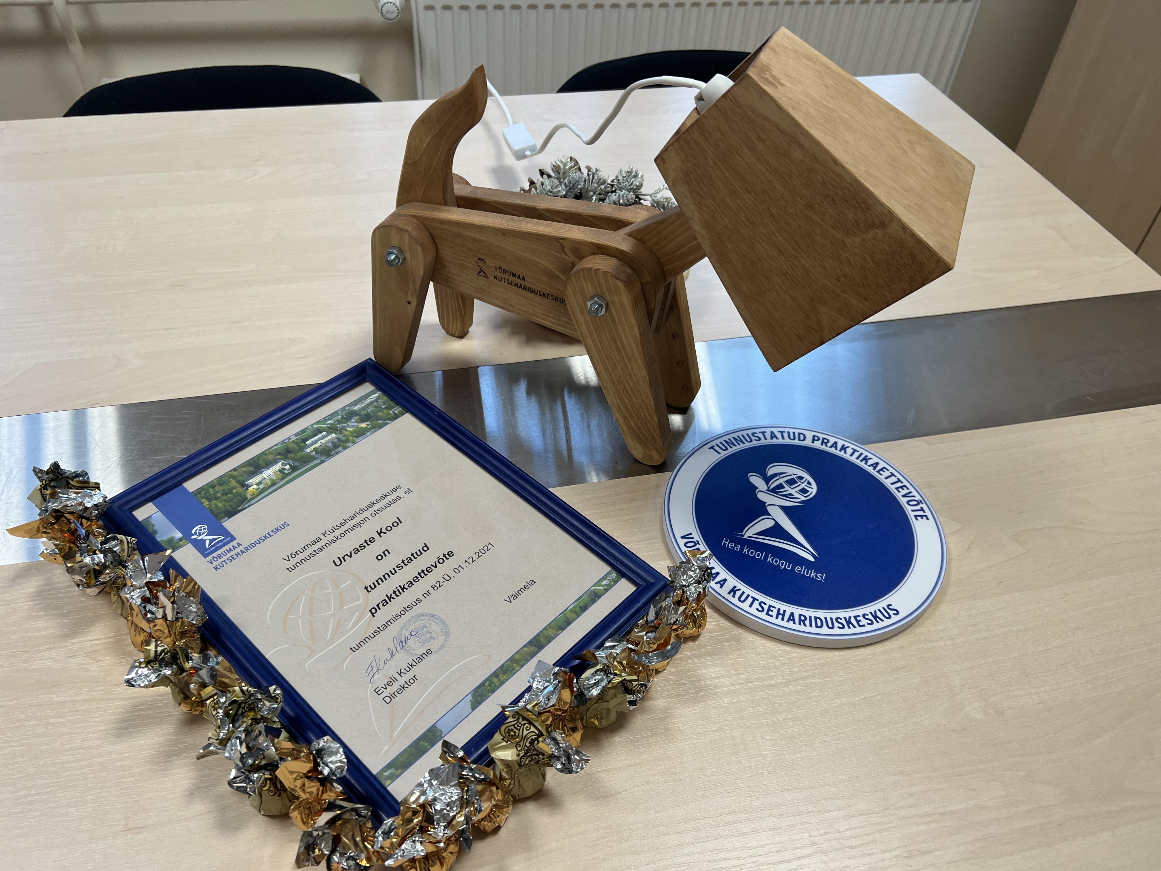 Võrumaa Kutsehariduskeskuse tunnustamiskomisjon otsustas, et Urvaste Kool on tunnustatud praktikaettevõte. Kutsehariduskeskuse direktor Eveli Kuklane andis tunnustuse meile üle tänasel kogu koolipere ja koostööpartnerite jõululõunal Urvaste Koolis.