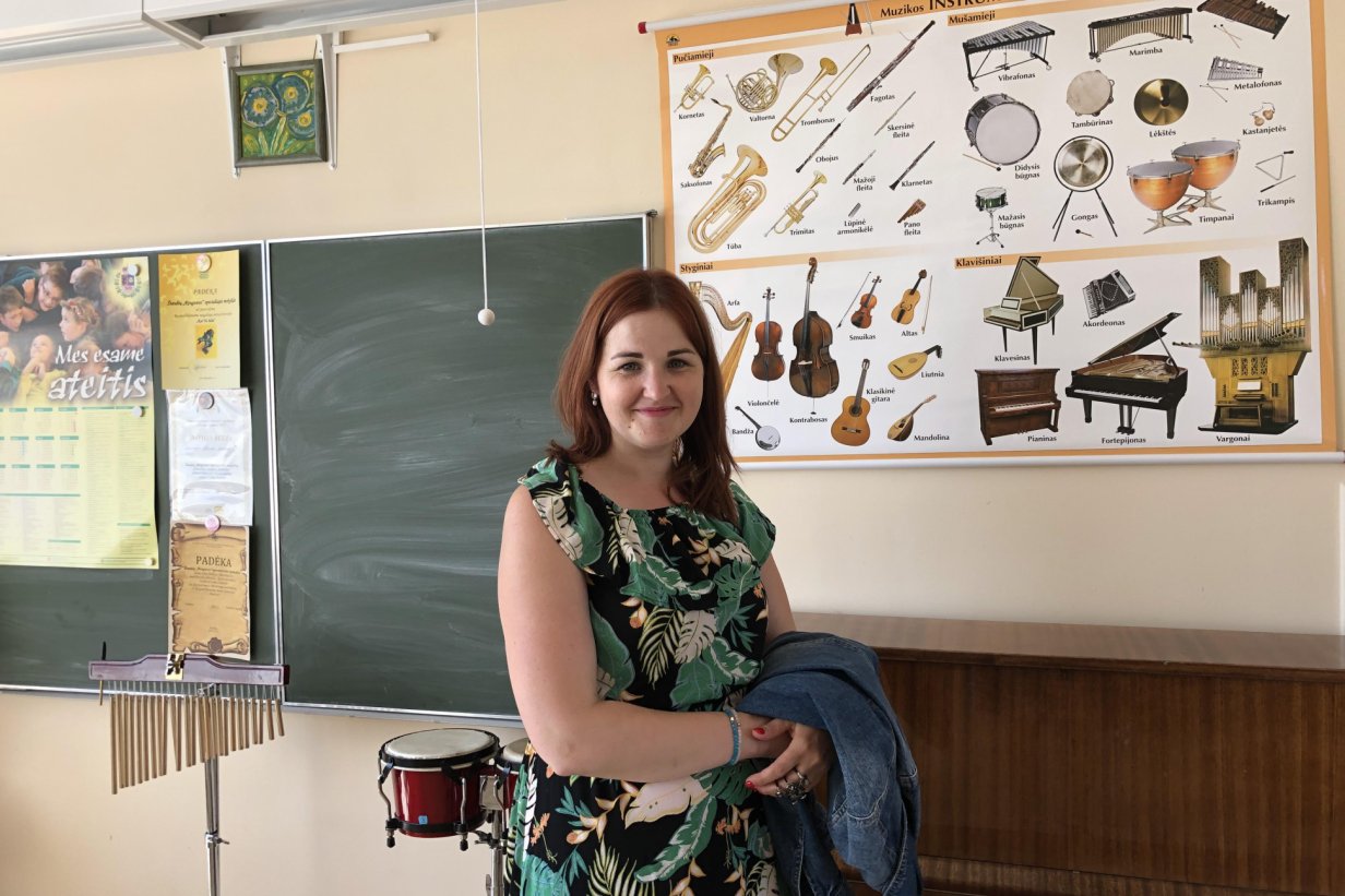 Foto 2: õpetaja Cathlen Šiaulai Ringua kooli muusikaklassis.